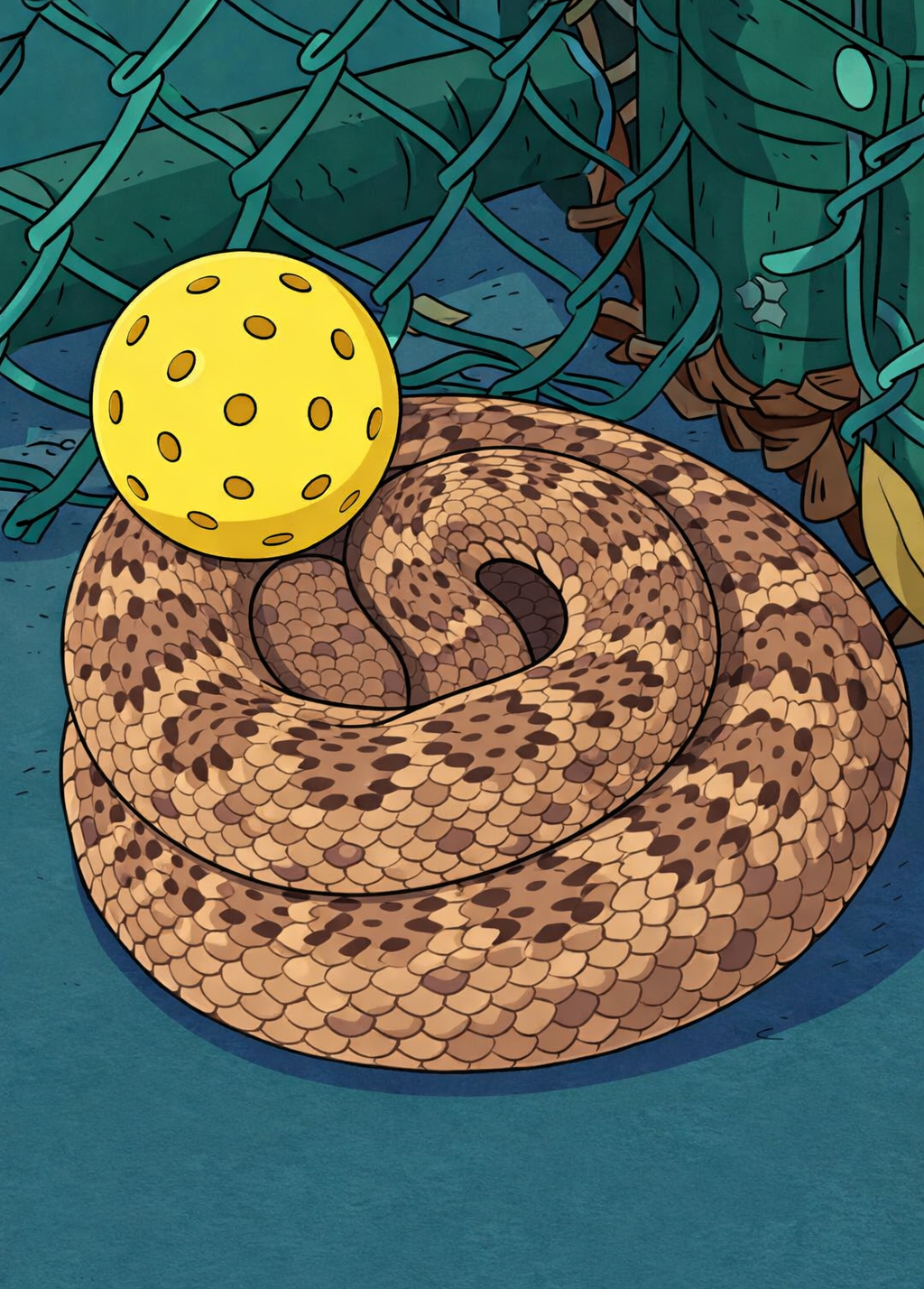 With the weather warming rapidly, it's about time for snakes to emerge from their winter dens. Please look where you are walking when around the courts, especially in the rocky areas, where a snake can easily blend with the background. Spring is when baby snakes leave the den, and they can be the most dangerous since they are more prone to strike and haven't learned to control the flow of venom. A 3' snake can curl up into a ball not much bigger than a pickleball. Be snake aware!